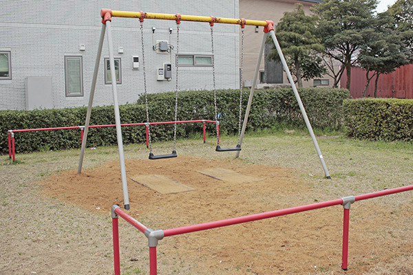1,600㎡ほどの敷地面積で、園内には一面に芝生が敷かれている公園です。門を抜ければ悠々とした多目的広場が広がり、その奥には定番遊具のブランコが置いてあります。ブランコの隣にはブナ科の常緑高木「マテバシイ」がほどよい木陰を作り、水のみ場が設置されています。その他に設置されている遊具はすべり台が1基。赤・黄・水色・オレンジの配色をしたカラフルなカラーリングです。周囲には桜の木も植えられているので、春の季節にはお花見を楽しむこともできます。遊具と広場のスペースが分けられているため多目的な活用ができ、水洗トイレも完備されているので利用しやすい講演となっています。
