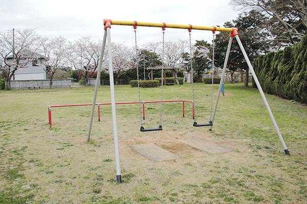 スタンダードなブランコ。春の季節には桜を眺めながらゆったりと遊ぶことができます。