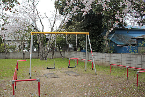 800㎡ほどのこぢんまりとした敷地面積を持つ、つばき児童公園。滑らかな石門を入ると、園内の景観を華やかにする椿の花が来園者を迎えてくれます。正面には外套と時計が並び立ち、公園の利便性を高めています。休憩所として利用するための設備として、トイレと水のみ場も置かれています。設置遊具は定番のすべり台とブランコ。もうひとつはイルカの形をした愛らしいスプリング遊具。作りが小さいため、大人の方は利用を控えた方がよいでしょう。数種類の木々と、桜の木も植えられていて、特に春の季節には来園者が増えことでしょう。