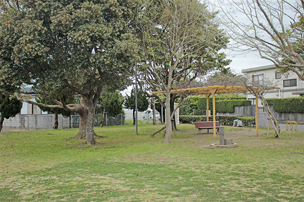 入り口を入れば黄色のパーゴラが目を引く柳堀児童公園。その下には1基のベンチが置かれ、周囲の木々が木陰を作っています。敷地の奥は緑の芝生が敷かれ、多目的に活用できるスペースを築いています。置かれている遊具はすべり台とブランコの2種類。遊具遊びの好きな子どもには少し物足りないかもしれません。それを補うように、本公園にはさまざまな種類の樹木が幹を連ねています。早春に白い花を咲かせるコブシ、耐寒性の高い落葉高木のトウカエデ、常緑高木のクスノキなど、緑豊かな公園となっています。水のみ場とトイレも完備されているので、休憩所としての利用もできます。