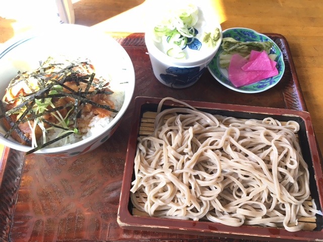 今回は、新たなメニューの角煮セットを頂きました。蕎麦は冷を選択。角煮はホロホロと肉がとろけるように煮込まれており、タレのかかった丼はボリュームもあります。他にも新メニューがありましたので、次回は別なものも楽しみです。