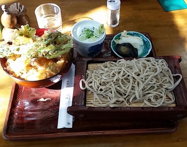 常陸秋そば。美味しいですね。 まいたけ天ぷら蕎麦。 舞茸以外にも天ぷらがついてきます。大盛りにしたのでボリュームよし、味よし。