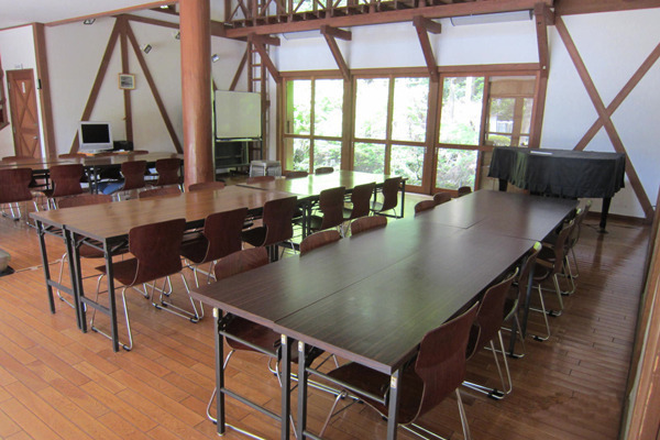 かみすわ山荘は、鮎川の上流に位置し、上諏訪小学校の跡地に『大屋根の大きな木の家(山荘)』をイメージして建設しました。山荘の脇を流れている小川のせせらぎ、鳥の鳴き声、森の香りなどを感じることができ、とても清閑な自然環境にあります。施設は、洋室の宿泊施設のほか、和室、男女別浴室、多目的ホールではピアノの演奏、卓球を楽しむ事もできます。山荘前には広場や野外炊飯施設を備えてあるので、ご家族や友人、サークル仲間とバーベキューを楽しむ事もできます。多くの方にご利用いただける様使用料金はお安くなっています。