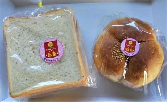 《那珂市特産品認証のパン》 ○玄米食パン(3枚入り) 220円 茨城産の小麦と玄米を使ったパン。 ○菅谷三宿あんパン 220円 茨城産の小麦を使っています。 粒あん、こしあん、カボチャあんが1つのパンで楽しめます。