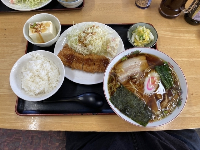 しばらくぶりの訪問です オーダーはもちろん、「ラーメン定食」です。 今日のおかずは豚のバラカツでした。 どこか懐かしさを感じる、あっさりスッキリした醤油ラーメンは、食べ飽きない美味さです。 コスパも良く、満足・満腹…ご馳走様でした