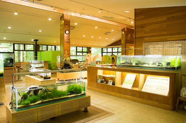 館内では、大小9つの水槽にメダカやドジョウなど展示しています。木のおもちゃ広場「うっしっし」も!