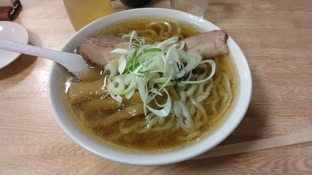 2022.5.14(土)19:45訪問。 かなり久々の訪問。7~8年ぶりでしょうか。 ラーメンをオーダー。待つこと約10分、着丼。 ビジュアルは昔のまんま。スープはくどさが全くなく、グビグビいけちゃうくらい。 麺は極太。修行元のそれそのものです。 具はメンマとチャーシュー1枚。このチャーシューも修行元そのもの。 「肉を食ってる」って感じです。ごちそうさまでした。