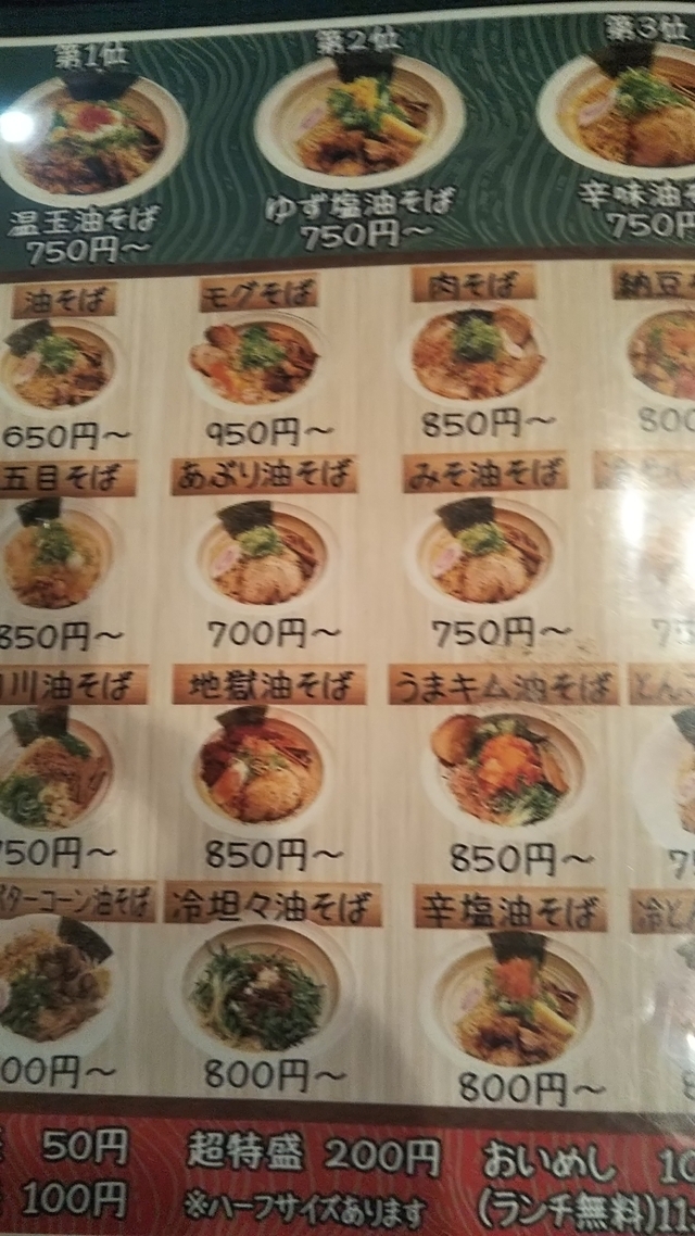 ◆油そば…650円