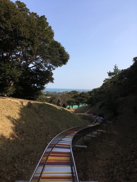公園内は自然豊かで、遊歩道も整備されていて、散歩にとても良いです。 子供が遊ぶ遊具もいくつかあり、家族連れで賑わっていました。 目玉は、元日本一長い滑り台。 お尻にダンボールを敷いて挑戦。 (大人なので、子供たちの邪魔にならないように配慮しながら…笑) 滑り台から太平洋が見えました。 スリリングで楽しく、2回も滑ってきまさした。 興味のある方は是非!
