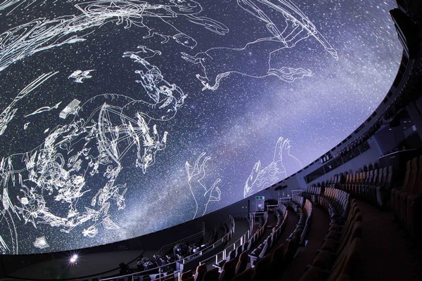 天球劇場では、様々なプラネタリウム番組やライブ解説が楽しめます。