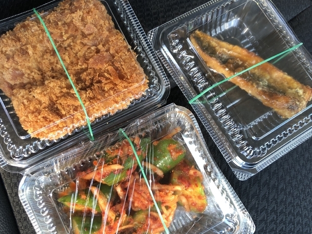 平日のお昼過ぎ、初めて寄らせて頂きました。 肉料理、魚料理、野菜料理、揚げ物〜煮物〜サラダまで様々なお惣菜が並んでおり、選ぶのが楽しくなります。 大・中・小のパックが置かれてあり、好きなお惣菜を好きな量だけ、完全セルフ式です。 全ての商品にそれぞれラップとトングが付いていて、衛生面にも気を遣われているのだなと感じました。 価格はスーパーのお惣菜売り場と大差ないですが、イワシの竜田揚げ1匹¥20でバラ売りしてるのとか嬉しいですね。色々な物を少しずつ食べたい時とか最適です。 ハムカツは特価で¥90→¥60でした。 肉厚で美味しかったです。これで¥60はとてもお買い得。 その他、お弁当やカレー、味噌汁などもありました。 こちらでお昼を購入して、近くのネーブルパークでピクニックするのも良いなーと思いました。 また寄らせて頂きます。