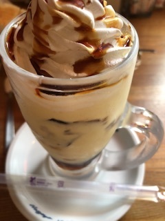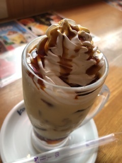 キャラメルソースたっぷりのジェリコにしました。したにはクラッシュゼリーがたくさん詰まっていて、ドリンクなのに食べ応えがあります。