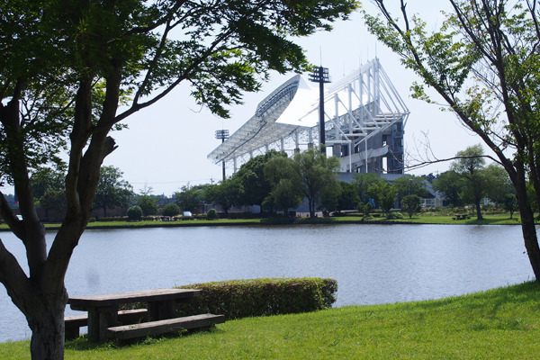 ケーズデンキスタジアムのすぐ裏側にある公園です。予想以上に広い池で、眺めているだけでも癒されます。また、池の周りを囲むように、広々としたお散歩コースになっているので、お天気の良い日は、ゆっくりと時間をかけて歩くと最高です。とにかく、一度行ってみる事をおすすめします♪