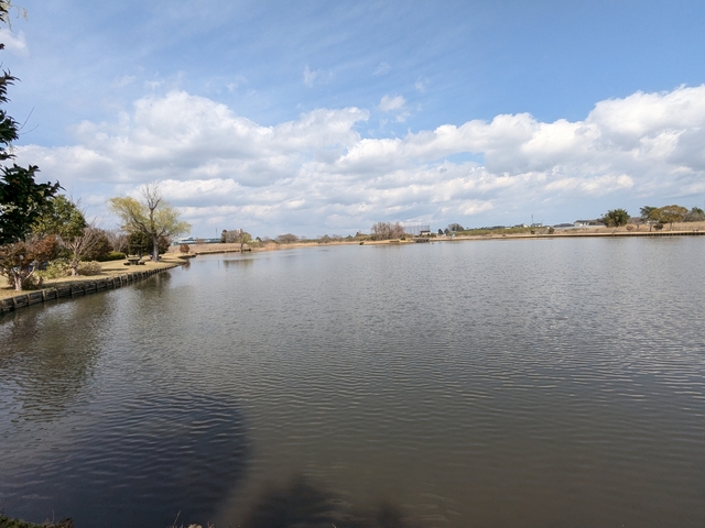 ケーズデンキスタジアムのすぐ横なのも良い。水戸ホーリーホックの試合観戦の前に行ってみました。のどかな風景に癒されます。近くに桜の木もあるのがまた良い。 お散歩にも持ってこいだと思います。 スタジアムからも席によってこの大きな池が見えます。