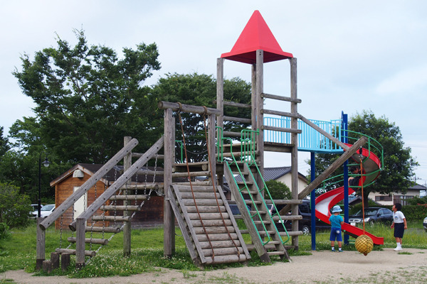 かなり大きめで、遊び方が色々楽しめる遊具が設置されていて、これは子供たちにはたまらない場所です。