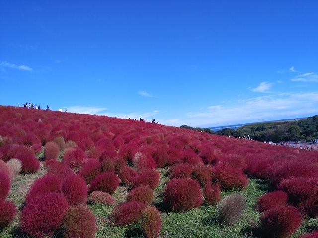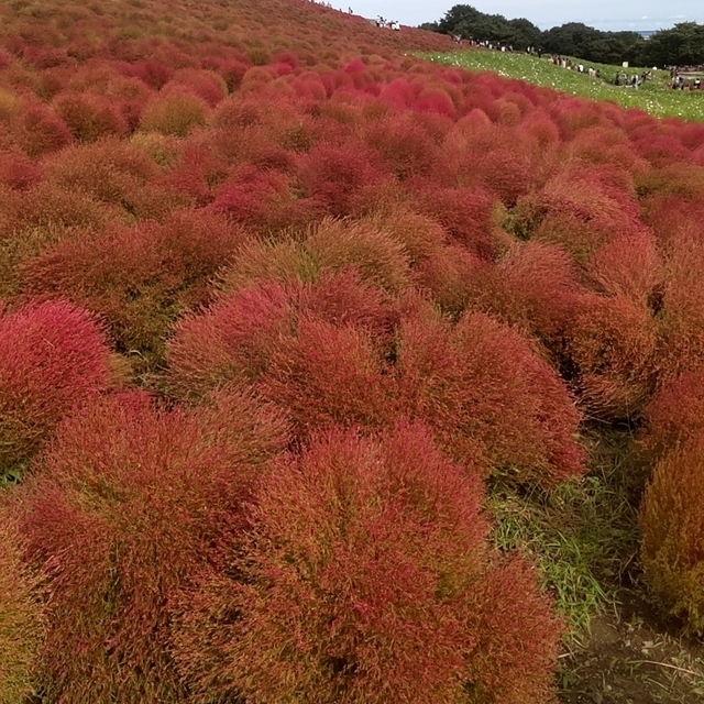 ネモフィラは何度も見てますが赤く色付いたコキアはなかなかタイミングが合わなくて今回2回目です。月曜日というのに人がいっぱい。 日曜日ならもっとすごかったんだろうな。 以前見たときよりコキアのボリュームがない感じがしました。 それでもこの規模を植えるってすごい