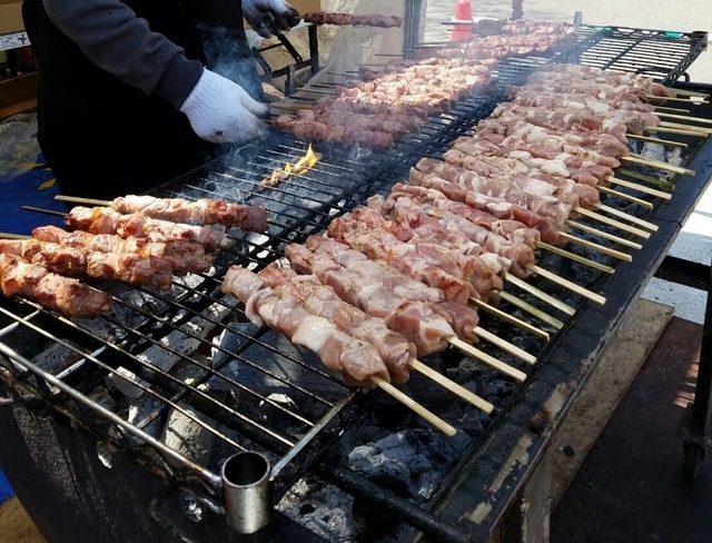 ●五浦ハムのハム焼き 国営ひたち海浜公園内にある、 その場での、焼きたてハム焼き。 ジューシーで、美味しいハムです。