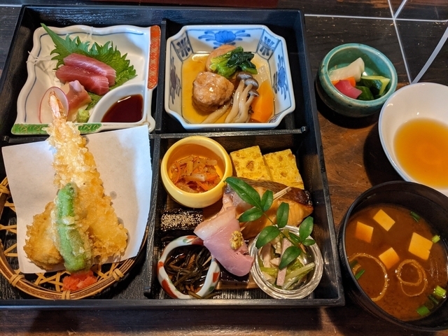 ランチを予約していきました。雰囲気がとっても素敵なお店で、歴史ある建造物に圧倒されます。ランチは2200円のお弁当ランチ。とてもおいしかったです。天ぷらもさくさくあつあつ、でちょっとずつたくさんの種類が詰め込まれていて、目でも舌でも楽しめました。 最後のチョコレートミルクプリン。名前はフツーだな(笑)と思いましたが、濃厚でおいしい!もっと食べたかったくらいです~(⋈◍>◡<◍)。✧♡