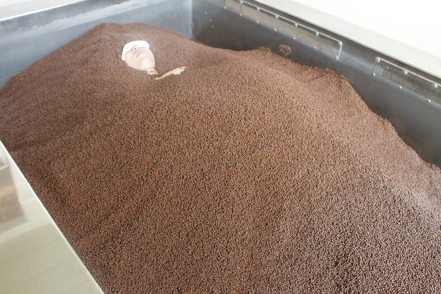 温水で加熱したサンドバスに全身入っていただきます。デトックス、病気の予防や代替療法、リハビリとしても