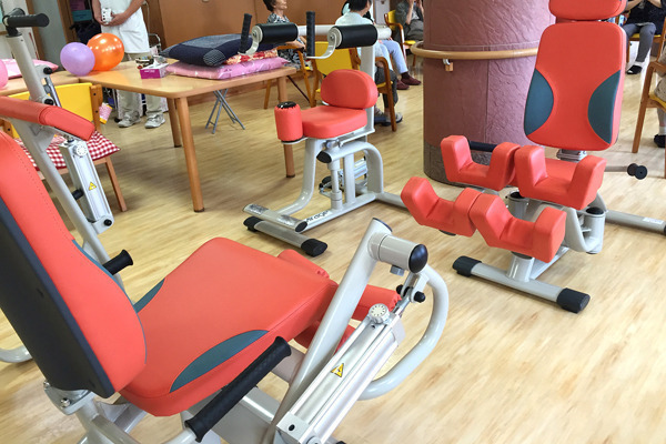 運動器具での足腰強化、音楽を聴きながらのストレッチ体操などで筋力向上と脳活性化を!
