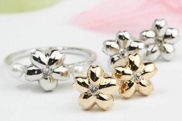 山桜のリング&ピアスです。ふっくらとしたフォルムが人気です。