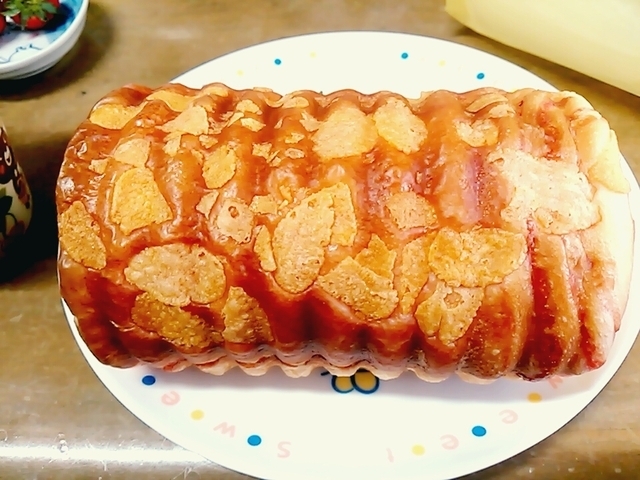 正式な名前は忘れてしまいましたが イチゴのラウンドパンです!新発売って書いてありました!! 上にはコンフレークがトッピングされていて中はイチゴフィリングが練りこまれていて美味しかったです♪