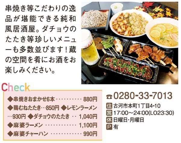 串焼き等こだわりの逸品が堪能できる純和食居酒屋。