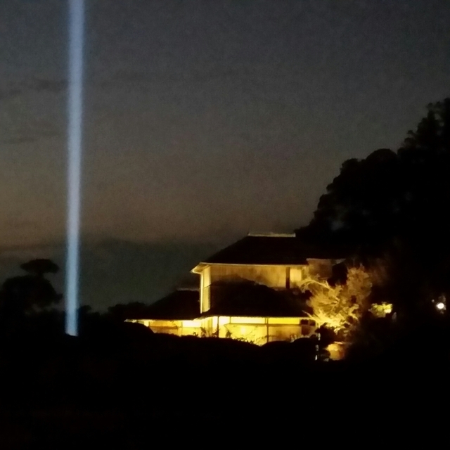 8日(日)までの、 3日間だけのイベントとして、 ライトアップを行いました。 光と音で幻想的な空間が 広がりました。 空へと伸びる光の柱は、 見る価値ありです。