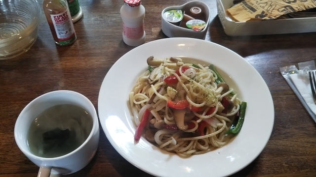 日替わりランチが充実しているお店。伺った日の日替わりメニューはチキンソテー、唐揚げカレー、野菜たっぷりパスタの3種類でした。セットで付いてくる乳酸菌飲料に癒されます。