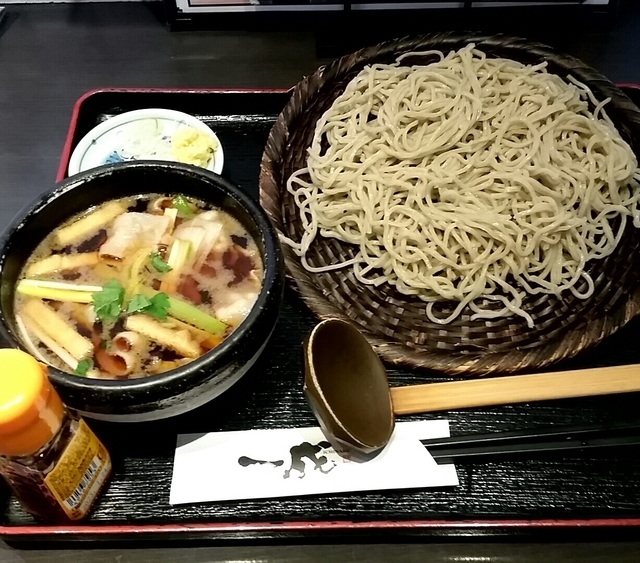 ◆肉汁せいろ蕎麦979円 肉が入った濃いめの味付けの つけ汁にネギなど具だくさん。 蕎麦は極細麺のやわらかめ。 見た目ボリュームありだが、 上げ底だっので普通。 肉汁とそばの相性がよく、 美味しい一品でした。