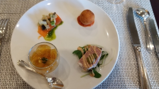 3000円のランチコース頂きました。前菜は人参ムースのコンソメジュレがけを含めて4品盛り合わせ、レンズ豆のスープ、メイン(お肉もしくはお魚)デザートはラズベリータルトなど3品の盛り合わせ。1つ1つが丁寧に作られていて、とても美味しかったです。