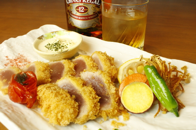 新鮮マグロのサクサクレアカツ。マグロを贅沢に130g使用、絶妙なレア加減がやみつきの人気メニュー!