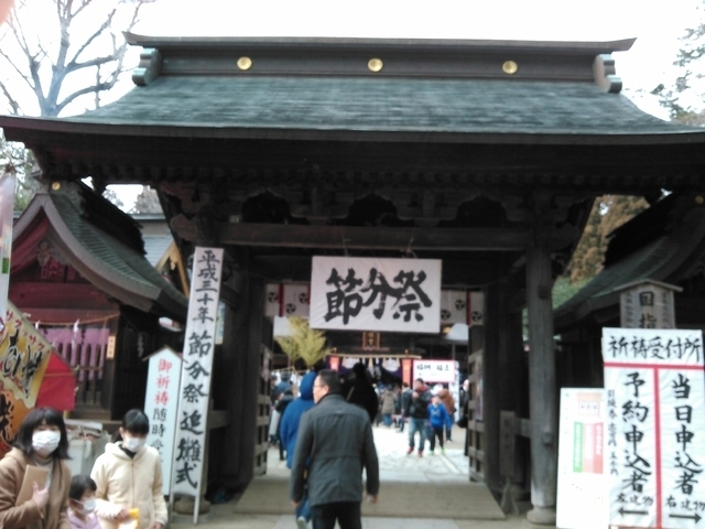 3日が土曜日だったので節分祭へ行って来ました。 豆と一緒にティッシュやお菓子がまかれます。 お菓子にクジが付いていて自転車やTDLのチケットなんか当たるみたいですが 私たちは缶コーヒーと出店の300円分の金券でした。