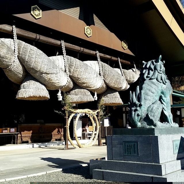 立派なしめ縄のある拝殿の他にも、龍蛇神社、薬神神社、桜林館や出雲館のガラスショップなど見どころが色々あり、もっと早く来てみたかったなーと感じました。 また昇龍の彫物もあったりして、今年にピッタリな場所だとも思います。出雲館のガラスショップで龍の置物を購入し、玄関の右側に飾りました♪ 昨年から胸が痛む出来事も色々発生していますが、少しでも平穏な一年でありますように。