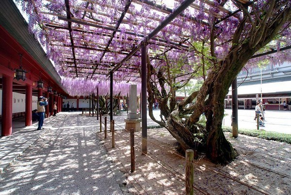 「八重の藤」(昭和42年県の天然記念物に指定)と「大藤」の二株の藤樹が、例年5月上旬に咲きます。