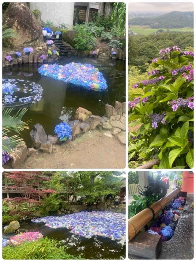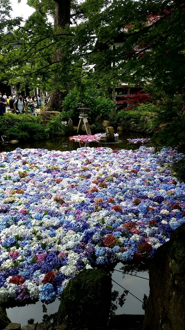 紫陽花の時期や孫の安産祈願でたびたび訪れる地元のお寺です。テレビで池に紫陽花を浮かべてきれいですという情報を得たので見にきました。とっても綺麗でした。