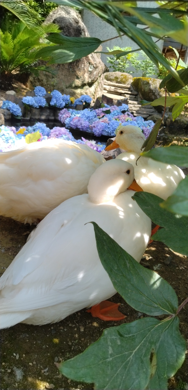 平日の早い時間でしたがもうそこそこ人手があります。 孔雀は残念ながら見つけられずアヒルにエサをあげてきました。 あじさいは思っていたより咲いていませんで残念。