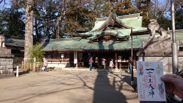 願いを叶える神社として有名と言うことで、昨秋初めて参拝しましたが、初詣も盛況と言うことを聞き、この正月三箇日に初詣で再訪しました。車で訪れると、神社周囲にある広い駐車スペース(無料・有料関わらず)がどこも満車で、長い車列が出来ているのに驚きます。結構遠くにある私有地(?)がにわか有料駐車場になっていて、そこに駐めて徒歩で神社方向に赴くと、神社からかなり離れた大鳥居のところまで、参拝客の長蛇の列(約300mくらい?)が出来ていてまた驚き。それでも30分ほどで拝殿で参拝することが出来ました。境内には露店が所狭しと設えられて、これまた賑やかです。神札授与所で御神札と交通安全御守を授与いただくとともに、今年一年の無事を祈願しました。