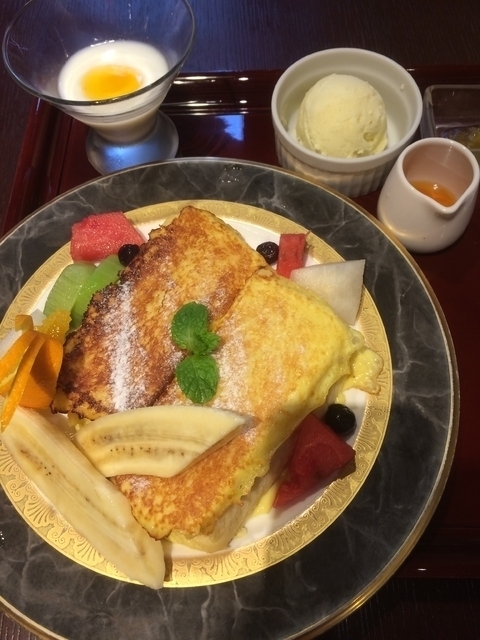 土曜の朝ですが、混雑する事もなく適度な賑わい。フレンチトーストを頂きました。季節のフルーツはスイカ、梨、キウイ、ブルーベリー、バナナ。フルーツの量は多くありませんが、フレンチトーストはボリュームがあり、完食できませんでした。