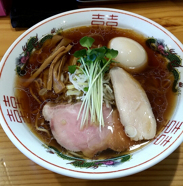 特性中華ソバを注文しました♪ 煮干し系と迷ったのですが、今回は贅沢に~(^^) 醤油ベースで鶏と鴨の出汁と香油をブレンドしたスープは鴨感を強めに感じる仕立てでした。 麺は細麺のプッツリと歯応えを感じる麺で旨しです♪ 玉子は中身がトロッてます♥ 豚と鶏の二種類のチャーシューもこれまた楽しめました! また訪問したい店です