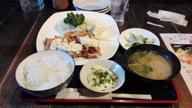 から揚げ嫌いな人いますか? いませんよね。 タルタルソース嫌いな人いますか? ほぼいませんよね。 この二つがタッグを組んだもんだから、そりゃもう大変だ‼ ご飯が進まない訳がない。 揚げたての鶏唐タルに、おかわり自由のホカホカご飯、味噌汁に漬物、小鉢の豆腐が付いてます。 タルタルソースは自家製で玉子たっぷり コスパ最高 とても美味しかったです。ごちそうさまでした。