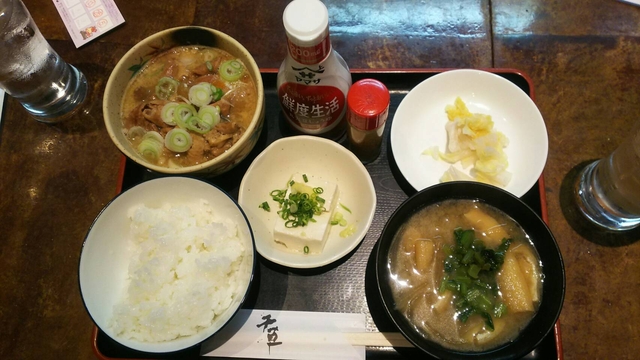 お昼に訪問、ランチメニューの中から もつ煮込み定食をいただきました。メーンのもつ煮込み、ご飯と味噌汁、小鉢のお豆腐、漬物のラインナップです。もつ煮込みが柔らかくトロトロで美味しく、箸が進みます。ご飯も美味しくお代わり自由。1杯目はもつ煮込みで、2杯目は、もつ煮込の旨味が出た汁をかけていただきました。 満腹満腹ぷはー そうそう、これで500円です いいね