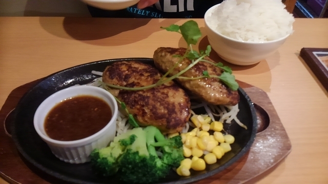 初めてハンバーグを食べにいきました。 注文するのにタッチパネル方式にちょっぴり緊張。 一品頼むとサラダバーがついてきてライスがお替り自由だなんて幸せ。 ハンバーグはジューシーでソースもオイシイ!!! ご馳走さまでした。