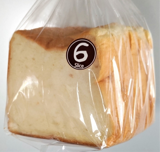 《GR茨城食パン》6枚切り324円 茨城産小麦と茨城産牛乳を使って焼き上げた食パンです。 大手メーカーの食パンより一回り小さいサイズですが、もちもち食感でおいしいです。 6枚切りのほか、5枚切りの商品もありました。おすすめの食パンです。