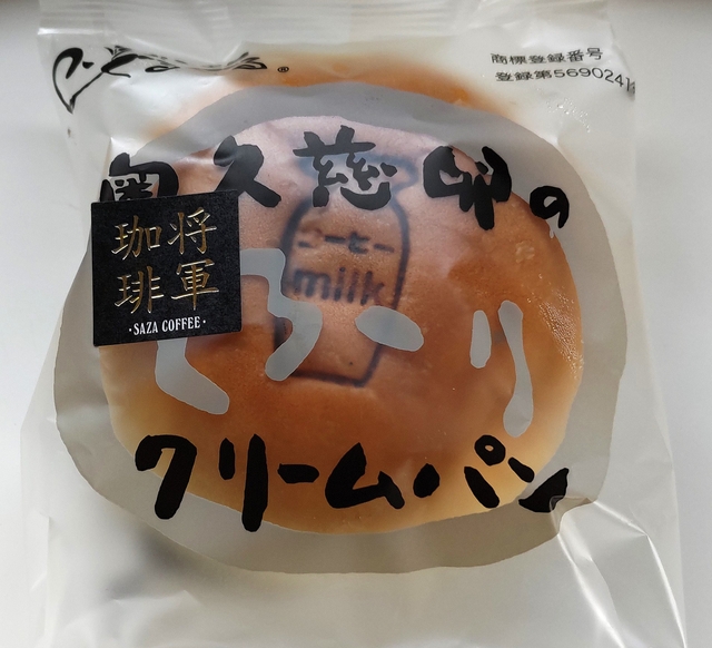 【将軍珈琲クリームパン】 正式な商品名は『将軍珈琲と奥久慈卵のとろ~りクリームパン』。 パンのフェスアワード2024でグランプリを受賞したパンです。 SAZA COFFEEの「将軍珈琲」を使ったとろ~りコーヒークリームがたっぷりと入っていて、おいしかったです。(324円)