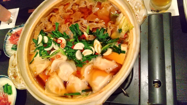 醤油ベースのもつ鍋はもつがプリプリしていて、スープはニンニクが効いてもつの良い味が出ていて旨過ぎる、こりゃお酒進むわ。 〆はおじや。 飲み放題ついて、5,000円は非常に良心的!