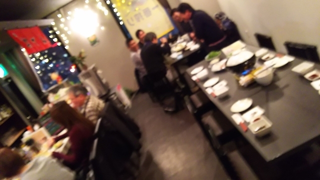 土曜の夕刻、にぎやかでした。かろうじてカウンターの端っこ座れました。宴会料理がボリュームあって美味しそうでした。