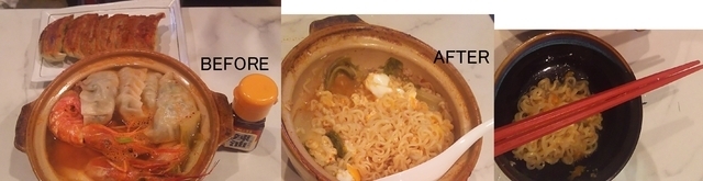 エビと餃子のウマ鍋特注です。 海鮮エキスたっぷりと餃子のニンニク味が抜群のコラボです。 お願いすればでてきます。