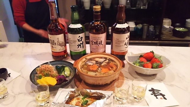 ボーナスが出たので背伸びして美味しいウィスキーを入れてもらいました。 贅沢にショットロックで飲み比べ。 白州はフレッシュな香り、爽やかで軽快なキレのよい味わいです。 宮城峡は余市とはまた違った雰囲気がありました。 液色は余市同様に黄金色で、少々薄い感じ。グラスからの香りは、シードルのようなリンゴを発酵させたような香りがします。