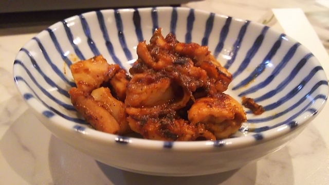 相田町産味噌(炎のシェフのお母さん作。)のホルモン焼き。 メニューに味噌焼おにぎりはあるのですが、その味噌が絶品だったので頼んでホルモン焼いてもらいました。 味を濃いめでお願いし、甘辛くてお酒もぐいぐいすすみました。